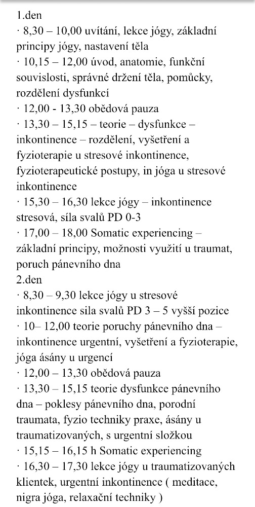 Budeme se seznamovat s přístupy u poklesů pánevních orgánů, u inkontinencí moče i stolice žen i mužů, porodních traumat, dyspareunie, pudendální neuralgie a možnosti fyzioterapie u endometriozy.